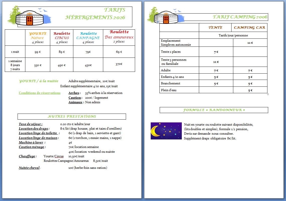 Tarifs et réservations